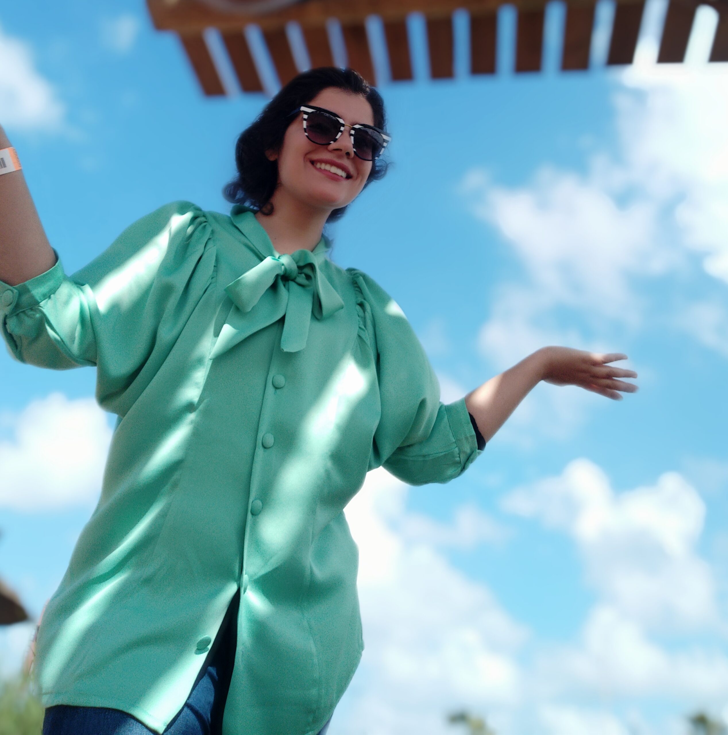 chemise en soie avec manche bouffante